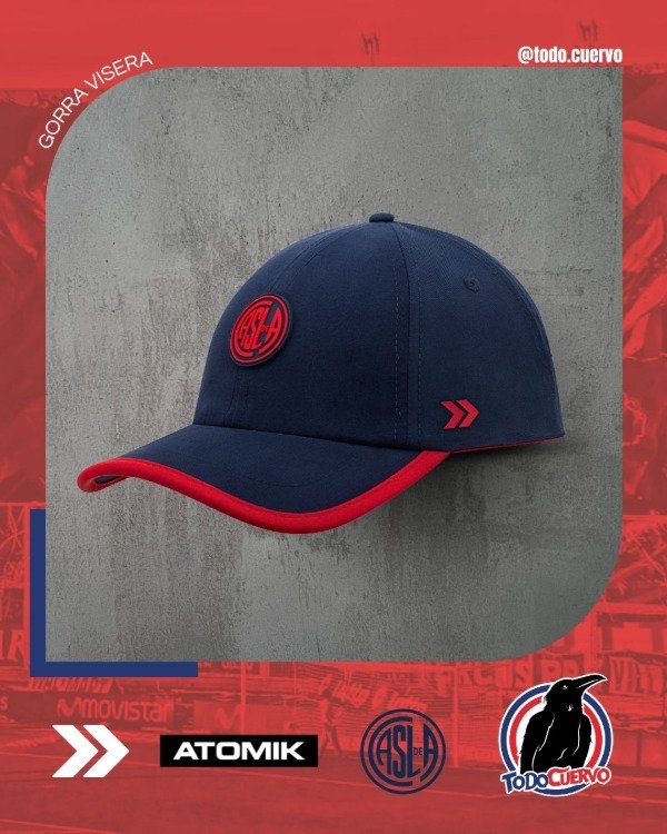 Posee visera curva envivada, y tira trasera de ajuste con velcro, uniones internas envivadas con frase alusiva; parche de emblema casla en goma con altura en delantero y grifa tejida con logo atomik en espalda.